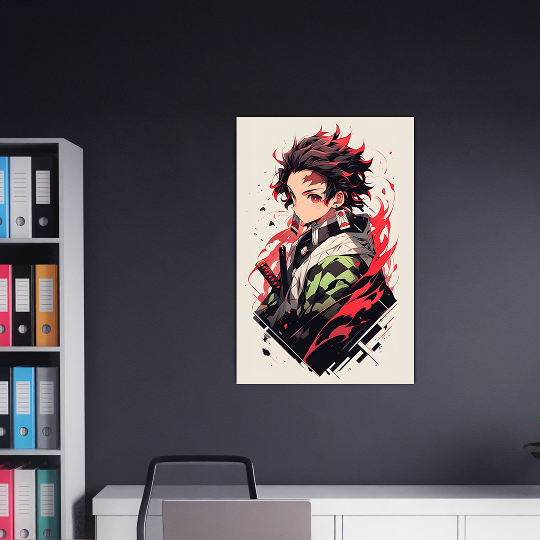 بوستر معدني عالي الجودة يصور تانجيرو كامادو، بطل أنمي قاتل الشياطين. يتميز التصميم بالألوان الحية والتفاصيل الدقيقة التي تعكس شخصية تانجيرو القوية وروحه القتالية. الطباعة على خامة معدنية متينة تجعل هذا البوستر مثالياً لتزيين غرف عشاق الأنمي والمانغا.
